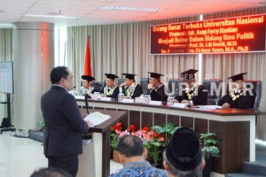“Berdasarkan semua itu, tim penguji Universitas Nasional memutuskan untuk mengangkat saudara menjadi doktor dalam program studi ilmu politik dengan yudisium sangat memuaskan,” tegasnya
